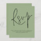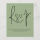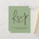 Simple QR Code Script Wedding Sage Green RSVP.  A convenient option enclosure to ask your guests to scan your QR code to your wedding website to RSVP.  A budget friendly 4.5” x 5.6” alternative. Available in a SEMI GLOSS 110 lb CARD STOCK or a SATIN FINISH 80 lb THINNER PAPER STOCK. A stylish set typography for the main heading RSVP complementing the rest of the text which you can easily personalise, with QR code on the back. Simply replace with your own.