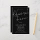 A LARGER size 5.5” x 8.5” at a budget price, Shown in classic black and white. This modern design has elegant informal set script for rehearsal Dinner and the rest of the typography you can easily personalise on a black background. You can also change text and background colours on either side if you wish via the Customise Further option.