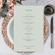 Simple sage green trendy minimalist typography custom text template BUDGET affordable wedding menu card. +++++++++++++++++++++++++++++++ PLEASE READ THIS BEFORE PURCHASING! This is a budget wedding card printed on a paper sheet (each sheet has one card). ++++ For the best rapport price quality, our advice is to choose the Semi-Gloss paper type (it is thick enough to be used for stationery) ++++ If you need envelopes, choose the ENVELOPE OPTION. +++ Double-check all the information and spelling of your text because you will receive exactly what you see - no one else will check anything before printing. ++++ This card is designed for size 4.5" x 5.6". In the case you choose another size of the card and text goes outside page, everything needs to be fixed before adding the product to cart. Please ask Live Design Service for help.