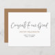 A value for money BUDGET alternative on a smaller size 4.5 x 5.6” semi-gloss 110lbs weight, which is of similar thickness to a postcard (however is not suitable to use as a postcard.). PLEASE NOTE there is ONE invite per sheet. Budget Simple Script Graduation Annnouncement. A simple typographical design, with the main header, Congrats to our Grad, in a set trendy black font. The rest of the text on each side is easily personalised and you can also change the editable text colours and style if you wish via the click to customise further option as well as the gold background on the back.