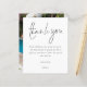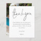 Simple Script Photo Wedding Thank You. A budget friendly SMALLER 4.5” x 5.6” alternative. Available in a SEMI GLOSS 110 lb CARD STOCK or a SATIN FINISH 80 lb THINNER PAPER STOCK. Envelopes are an optional extra. An elegant minimalist typography design with a set handwriting style script for Thank You. On the back replace the sample picture with your own favourite from your party as a keepsake for your guests. Easily personalise the rest of the text with your message and name.