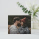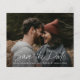This Modern script Photo Wedding Save the Date features an elegant, minimal design with hand lettered save the date white typography on a full bleed photo. Customisable details and photo on the front. The back offers a personal message. Click the Edit button to personalise this design.