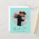 Minimalist trendy modern sea glass blue green stylish calligraphy script budget affordable wedding thank you card personalised with your photo, custom text, and signature on both sides. ++++++++++ NOTE that the colours can be changed to match your wedding colour scheme. If comfortable doing it, you can change them after selecting CUSTOMIZE IT option. ++++++++++ PLEASE READ THIS BEFORE PURCHASING! This is a budget affordable wedding card printed on a paper sheet (each sheet has one card). ++++ For the best rapport price-quality, our advice is to choose the Semi-Gloss paper type (it is thick enough to be used for stationery) ++++ If you need envelopes, choose the ENVELOPE OPTION. +++ Double-check all the information and spelling of your text because you will receive exactly what you see - no one else will check anything before printing. ++++ This card is designed for size 4.5" x 5.6". In the case you choose another size of the card and text goes outside page, everything needs to be fixed before adding the product to cart. Please ask Live Design Service for help.