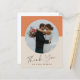 Minimalist trendy modern rusty burnt orange and beige cream stylish calligraphy script budget affordable wedding thank you card personalised with your photo, custom text, and signature on both sides. ++++++++++ NOTE that the colours can be changed to match your wedding colour scheme. If comfortable doing it, you can change them after selecting CUSTOMIZE IT option. ++++++++++ PLEASE READ THIS BEFORE PURCHASING! This is a budget affordable wedding card printed on a paper sheet (each sheet has one card). ++++ For the best rapport price-quality, our advice is to choose the Semi-Gloss paper type (it is thick enough to be used for stationery) ++++ If you need envelopes, choose the ENVELOPE OPTION. +++ Double-check all the information and spelling of your text because you will receive exactly what you see - no one else will check anything before printing. ++++ This card is designed for size 4.5" x 5.6". In the case you choose another size of the card and text goes outside page, everything needs to be fixed before adding the product to cart. Please ask Live Design Service for help.
