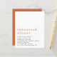 Budget Simple Terracotta Rehearsal Dinner A budget friendly SMALLER 4.5” x 5.6” alternative. Available in a SEMI GLOSS 110 lb CARD STOCK or a SATIN FINISH 80 lb THINNER PAPER STOCK. Envelopes are an optional extra. The header is large in stylish lowercase with the details beneath. Lots of white space at the top for a contemporary feel! Easily personalise the text to your own details.