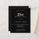 Budget Simple Text Black 21st Birthday Invitation. A value for money smaller 4.5 x 5.6 inch alternative defaulted to the semi gloss option which is recommended for invitations and is a similar thickness to a postcard. The satin option is much thinner paper better for enclosures.