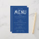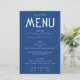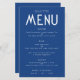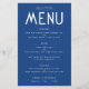 Budget Simple Text Mid Blue Wedding Menu. A budget price size 5.5” x 8.5”, Easily personalise the text to your own details which includes alternatives for your vegan or vegetarian options. You can change if you wish to any colours of your choice to match your wedding theme.