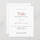 Budget Simple Text Blush 70th Birthday Invitation. A value for money smaller 4.5 x 5.6 inch alternative defaulted to the semi gloss option which is recommended for invitations and is a similar thickness to a postcard. The satin option is much thinner paper better for enclosures.