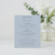 Simple Text Dusty Blue Wedding Menu. A budget price SMALLER 4.5” x 5.6” alternative. Available in a SEMI GLOSS 110 lb CARD STOCK which is the default option (recommended for invitations, similar to the thickness of a postcard), OR a SATIN FINISH 80 lb THINNER PAPER STOCK (ideal for enclosures). You can also change the font style and colours and the background colours on the front and back if you wish via the Click to Customise Further option.
