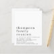 Budget Simple Text Family Reunion Party Invite. A budget friendly SMALLER 4.5” x 5.6” alternative. Available in a SEMI GLOSS 110 lb CARD STOCK or a SATIN FINISH 80 lb THINNER PAPER STOCK. Envelopes are an optional extra. The header is large in stylish lowercase with the details beneath. Lots of white space at the top for a contemporary feel! Easily personalise the text to your own details.