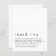 A value for money BUDGET alternative on a smaller size 4.5 x 5.6” semi-gloss 110lbs weight, which is of similar thickness to a postcard (however is not suitable to use as a postcard.). PLEASE NOTE there is ONE per sheet. Budget Simple Text Funeral Sympathy Thank You. The header is large in stylish lowercase with the details beneath. Easily personalise the text to your own message of thanks. Change the text and background colours to any of your choice.