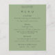 Simple Text Sage Green Wedding Menu. A budget price SMALLER 4.5” x 5.6” alternative. Available in a SEMI GLOSS 110 lb CARD STOCK which is the default option (recommended for invitations, similar to the thickness of a postcard), OR a SATIN FINISH 80 lb THINNER PAPER STOCK (ideal for enclosures). You can also change the font style and colours and the background colours on the front and back if you wish via the Click to Customise Further option.