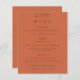 Simple Text Terracotta Wedding Menu. A budget price SMALLER 4.5” x 5.6” alternative. Available in a SEMI GLOSS 110 lb CARD STOCK which is the default option (recommended for invitations, similar to the thickness of a postcard), OR a SATIN FINISH 80 lb THINNER PAPER STOCK (ideal for enclosures). You can also change the font style and colours and the background colours on the front and back if you wish via the Click to Customise Further option.