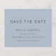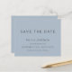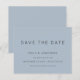 Simple Typography Dusty Blue Save The Date. A budget price SMALLER 4.5” x 5.6” alternative. Available in a SEMI-GLOSS 110 lb CARD STOCK which is the default option (thicker for invitations), OR a SATIN FINISH 80 lb THINNER PAPER STOCK (ideal for enclosures). Envelopes are an optional extra and are slightly larger than the card size. Simple elegance with Save The Date in a modern set script.The rest of the text you can easily personalise.Shown here in black on Dusty blue however the text and background colours can be changed if you wish via the customise further option.