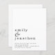 Simple Typography Wedding Save The Date. A budget friendly SMALLER 4.5” x 5.6” alternative. Available in a SEMI GLOSS 110 lb CARD STOCK or a SATIN FINISH 80 lb THINNER PAPER STOCK. Envelopes are an optional extra. Informal style. Your names are large in stylish lowercase with the details at the bottom and lots of white space at the top for contemporary style. Easily personalise the text to your own details.