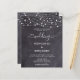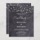 Invite friends and family to your wedding with these elegant yet rustic chalkboard and string lights wedding invitation cards. These unique slate all in one wedding invitations feature elegant white string lights on grey chalkboard slate design with wedding website qr code for easy RSVP's. Personalise these chalkboard wedding invitations with names, wedding date, and location.  See our wedding collection for unique wedding invitations, wedding photo albums, guest books, party gifts, and more! COPYRIGHT © 2020 Judy Burrows, Black Dog Art - All Rights Reserved. Budget Slate Rustic String Lights QR Code Wedding Invitation