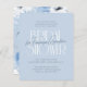 A dusty blue bridal shower budget invitation with bold typography and handwritten script lettering. The front of the card features a light blue background, with "Bridal shower" written in white deco-inspired typography. The bride-to-be's name is written in chic modern calligraphy over it. Above and below, the event details appear in elegant formal serif typography. The cards reverse to a watercolor floral pattern. As part of the budget selection on Zazzle, this sheet isn't a standard invite size or paper quality. If you want this design on an invitation card you can find it in the collection or use the Zazzle Make Machine to transfer it onto the product of your choice. View the collection linked on this page for matching items or visit our store for more bridal shower invitation designs!