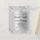 Faux sparkly silvery glitter against a pale satin shimmer silver ombre gradient graphic image.