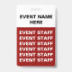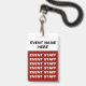 Use these budget special event badges created in red and white with lanyards included. With the design printed on both sides your information will be displayed even if the badges turn around to the other side. Customise these online for trade shows, concerts, seminars, or special events.