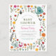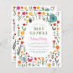 A bright and colourful spring design for your baby shower. The front of this card features a hand-drawn border of garden flowers and leaves, with a watering can in the top right-hand corner, two little bees in the top left-hand corner, and a pair of butterflies in the bottom left-hand corner. The main colours that stand out are turquoise, pink, red, orange, yellow, and green. Your event details appear in rustic typography with "baby shower" in rough serif capitals and the mum-to-be's name in penciled handwriting. Cards reverse to the same border with the middle area also filled with blooming buds and flowers. As part of the budget selection on Zazzle, this sheet isn't a standard invite size or paper quality. If you want this design on an invitation card you can find it in our store or use the Zazzle Make Machine to transfer it onto the product of your choice. Feel free to message me if you have any questions!
