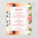 Budget Spring Orange Floral Wedding Menu Card (size 4,5"x 5,6")