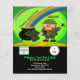 Budget St. Patrick's Day party invitation on quality paper sheets. Featuring a leprechaun, a pot of gold, a rainbow, a calendar with March 17, and a wall clock with the time. This is set up with a bar and grill, though customise it for a family party. Everything can be personalised and customised on this invitation.