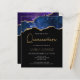 This trendy quinceañera invitation features a watercolor image of an agate geode in shades of blue and purple, sprinkled with twinkling stars and trimmed with faux gold glitter highlights. The word "Quinceañera" appears in faux gold glitter in decorative modern handwriting font. Customise it with the name of the guest of honour in gold art deco font and the party details in white sans serif type. The same starry agate image appears on the reverse side.