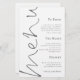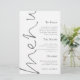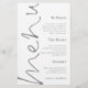 Size 5.5” x 8.5” at a budget price, This modern design has Menu in elegant set grey script running up the left hand side and the rest of the text is aligned to the right which you can easily personalise as well as your names and wedding date on the back. Text and background colours on either side can be changed to any of your choice via the customise further option.