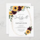 This bachelorette party invitation is perfect for a sunflower themed party. The design features watercolor sunflowers and burgundy roses with sage eucalyptus greenery and gold frame accent. Personalise with all of your party details.