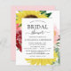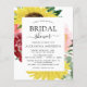 Budget Burgundy and Yellow Spring or Summer Blush Pink Floral (Flowers) Sunflower Botanical Eucalyptus Watercolor Wedding Bridal Shower Invitations on white background - includes modern beautiful and elegant script typography with modern botanical leaves and greenery for the special Bride to Be celebration.