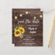 Save money on formal invitations with this smaller invitation that has an option for envelopes. Get your guests ready for the amazing wedding with your Sunflower, Wood, & String Lights Save the Dates.