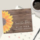 This rustic and simple card features an original watercolor painting of a yellow sunflower on a barn wood background.