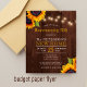 Rustic elegant budget affordable fall housewarming party / bbq stylish invitation FLYER template on maroon dark brown barn wood featuring bouquets of yellow gold sunflowers and string twinkle lights. ++++++++++++++++ The invitation is suitable for elegant autumn fall rustic outdoor backyard housewarming barbecues / parties. ++++++++++ PLEASE READ THIS BEFORE PURCHASING! This is a budget affordable card printed on a FLYER. ++++ Please note that BUDGET PAPER IS THIN - You can upgrade to have this card printed on cardstock ++++ ENVELOPES NOT INCLUDED. +++ Double-check all the information and spelling of your text because you will receive exactly what you see - no one else will check anything before printing. ++++ This card is designed for size 4.5" x 5.6". In the case you choose another size of the card and text goes outside page, everything needs to be fixed before adding the product to cart. Please ask Live Design Service for help.