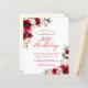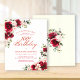 Red roses and blush pink peonies are nestled in dark green leaves on this beautiful and unique birthday invitation.