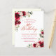 Red roses and blush pink peonies are nestled in dark green leaves on this beautiful and unique birthday invitation.