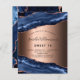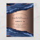 A modern, stylish and glamourous invitation for a Sweet 16, 16th birthday party. Blue and rose gold agate, marble stone background. The name is written with a modern hand lettered style script. Personalise and add your party details.