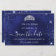 A girly and trendy Save the Date card for a Sweet 16, 16th birthday party. A blue uneven coloured background. Decorated with faux glitter dust and a tiara, crown. The text: Save the Date is written with a large trendy hand lettered style script.