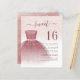 Featuring a pretty blush pink dress and faux rose gold glitter with modern script and popular typography, this birthday invitation is perfect for a princess celebrating her sweet 16th birthday.