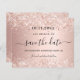 A Save the Date card for a Sweet 16, 16th birthday party. A rose gold metallic looking background decorated with faux glitter dust. Personalise and add a date and name/age. The text: Save the Date is written with a large trendy hand lettered style script with swashes.