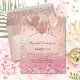 For an elegant Sweet 16, 16th birthday. A rose gold and pink gradient background. Decorated with rose gold, pink faux glitter drips, paint dripping look and balloons. Personalise and add a name, age/text and party details. The name is written with a hand lettered style script