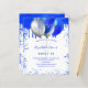 A white background. Decorated with royal blue faux glitter drips paint dripping look, sparkles. Royal blue and faux silver balloons. Personalise and add a name and party details. The name is written with a hand lettered style script.