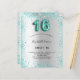 A modern, stylish and glamourous invitation for a girl's Sweet 16, 16th birthday party. A faux silver looking background, decorated with teal coloured glitter dust. Personalise and add your name nad party details. Number 16 is written with a balloon style font, script.