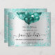 A girly and trendy Save the Date card for a Sweet 16, 16th birthday party. A faux silver looking background decorated with teal, green faux glitter dust and balloons. Personalise and add a date and name/age. The text: Save the Date is written with a large trendy hand lettered style script.