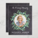 Modern Watercolor Eucalyptus Greenery Sympathy Photo Funeral Thank You Cards. These sympathy funeral cards feature a unique photo template in eucalyptus botanical wreath,, name and dates, on a rustic chalkboard design. Personalise back with your message of thanks. These memorial sympathy cards are perfect for funeral thank you cards, or celebration of life thank you cards. COPYRIGHT © 2020 Judy Burrows, Black Dog Art - All Rights Reserved. Budget Sympathy Funeral Thank You Card Eucalyptus