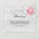 A simple and elegant sympathy thank you card with photo. A faux silver metallic looking background, a white frame, faux glitter dust, white and pink roses, florals. Personalise and add your thank you note. Black text.