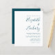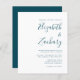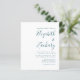 This simple modern wedding invitation features teal blue text on a white background. Add the names of the bride and groom in stylish handwriting calligraphy and the details in sans serif font. The reverse side provides space for wedding details on a solid teal background, along with a QR code guests can scan to visit your website and RSVP. NOTE: Envelopes are not automatically included with these budget invitations, so please remember to choose the "white envelopes" option!
