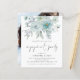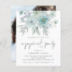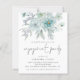 There are two paper options to choose from for this size (4.5 x 5.6”) in the Budget range. For this product, I would recommend the semi-gloss which is a 110 gsm card stock, similar in thickness to a postcard. The Satin option is a much thinner paper 80gsm. The default is set to semi-gloss. PLEASE NOTE there is ONE per sheet. Budget Teal White Sea Mist Florals Photo Engagement Party Invitation. An informal set typography in black for the main heading Engagement Party complementing the rest of the text which you can easily personalise. Reolace the sample photo on the back with your own.