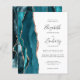 The left-hand edge of this elegant modern wedding invitation features a teal watercolor agate border trimmed with faux rose gold glitter. The customizable text combines handwriting, copperplate and italic fonts in charcoal gray on a white background. The reverse side features a matching teal and rose gold agate design. NOTE: Envelopes are not automatically included with these budget invitations, so please remember to choose the "white envelopes" option!
