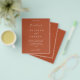 No envelopes, paper flyer version. Save money on formal invitations with this small invitation. Get your guests ready for your amazing wedding with your Terra Cotta MOD Calligraphy Wedding Invitations.