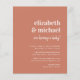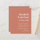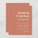 Minimal modern budget-friendly terracotta couple's baby shower invitation featuring the parents' names and "are having a baby!" in a mix of trendy white typography and a stylish white script, and the shower details in simple white typography. You can specify the gender of the baby if desired (e.g., "are having a baby boy!").